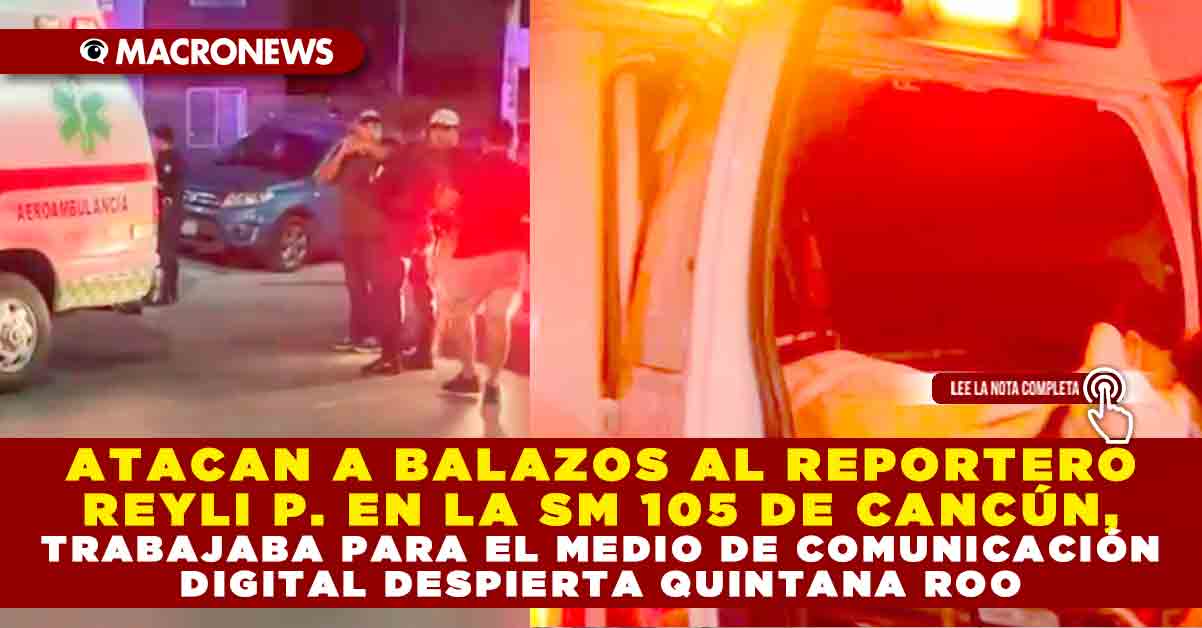Redacción Macronews | Por Renán Moguel.– Reyli P., conocido como «El Pecas», reportero del medio digital Despierta Quintana Roo, fue baleado la noche del domingo en la Supermanzana 105 del fraccionamiento Tierra Maya.