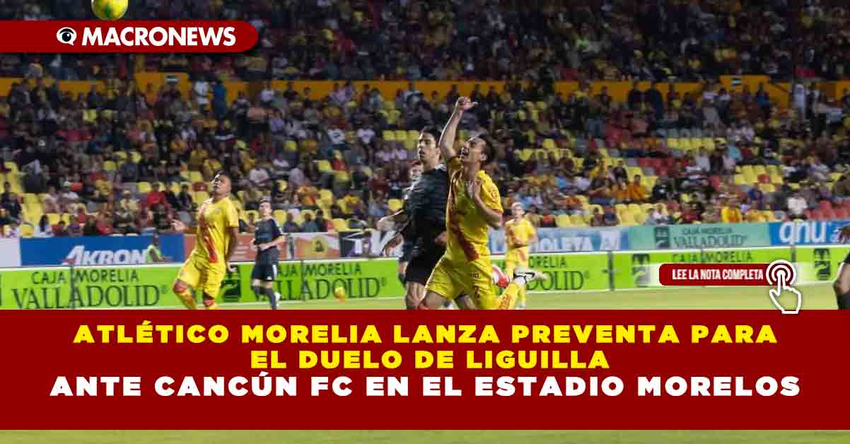 Morelia, Michoacán.-El Club Atlético Morelia anunció una preventa especial para el juego de Ida de los Cuartos de Final del Apertura 2025 que sostendrán los Canarios ante Cancún F.C. en duelo a celebrarse este próximo jueves 13 de noviembre a partir de las 19:15 horas sobre la cancha del Estadio Morelos de la capital michoacana.