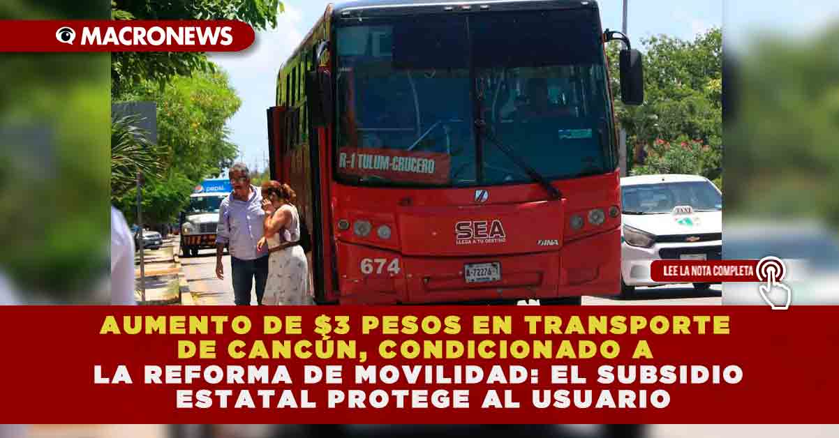 🚌 AUMENTO DE $3 PESOS EN TRANSPORTE DE CANCÚN, CONDICIONADO A LA REFORMA DE MOVILIDAD: EL SUBSIDIO ESTATAL PROTEGE AL USUARIO