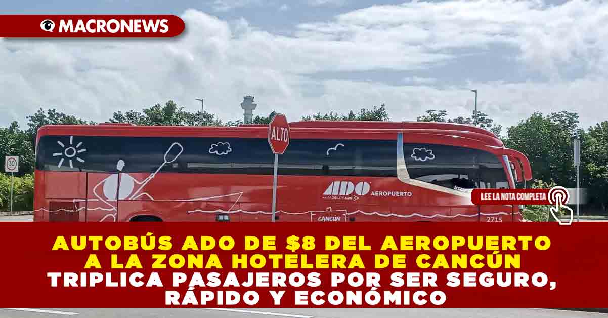 La ruta de autobús ADO que conecta el Aeropuerto Internacional de Cancún (CUN) directamente con la Zona Hotelera ha triplicado su número de pasajeros y su frecuencia desde su lanzamiento a principios de este año, y se ha convertido en el truco definitivo para una llegada económica.