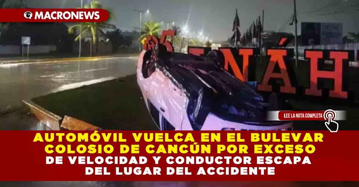 Redacción Macronews.- La madrugada de este jueves se registró un accidente vehicular sobre el bulevar Luis Donaldo Colosio, a la altura de la Universidad Anáhuac en Cancún, donde un automóvil terminó volcado con las llantas hacia arriba. De acuerdo con los primeros reportes, el conductor del vehículo, un Nissan Tiida, perdió el control presuntamente por exceso de velocidad sobre pavimento mojado, lo que provocó que derrapara, girara y finalmente volcara. Al arribo de los cuerpos de emergencia, el conductor ya no se encontraba en el lugar.