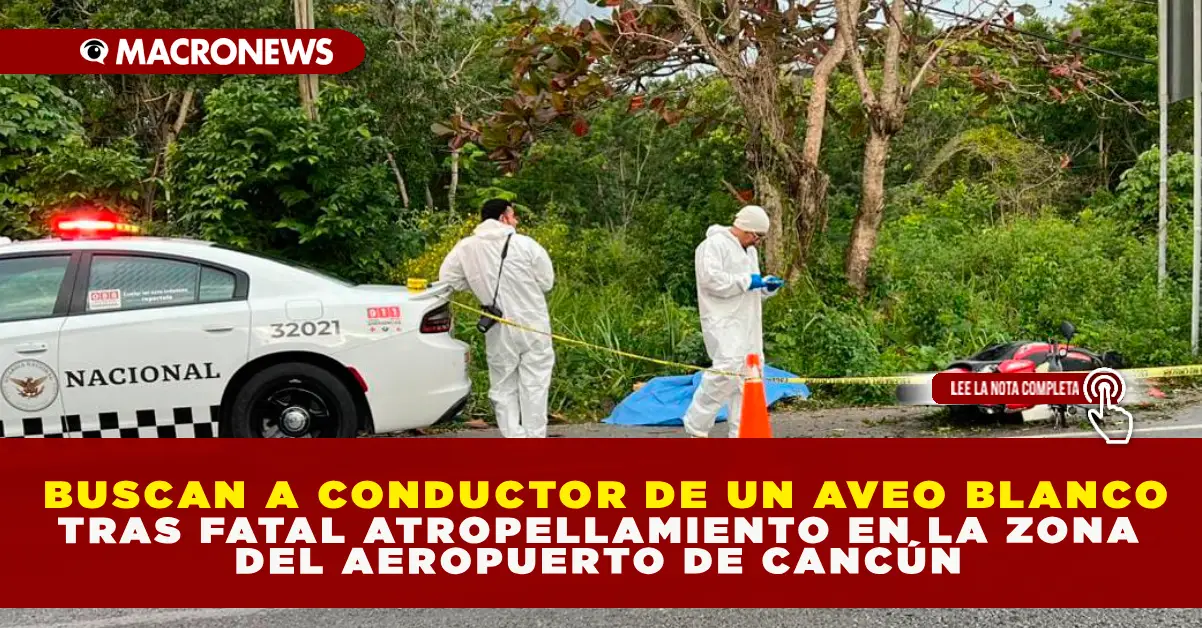 REDACCIÓN MACRONEWS.- Una nueva tragedia vial sacudió la carretera federal 307 durante la tarde de este martes, cuando un motociclista perdió la vida tras ser brutalmente arrollado por un automovilista que huyó del lugar. El fatal accidente se registró a la altura del puente que conduce al Aeropuerto Internacional de Cancún, en la entrada al libramiento hacia Mérida, dejando el cuerpo de la víctima sobre el asfalto a varios metros de su unidad.