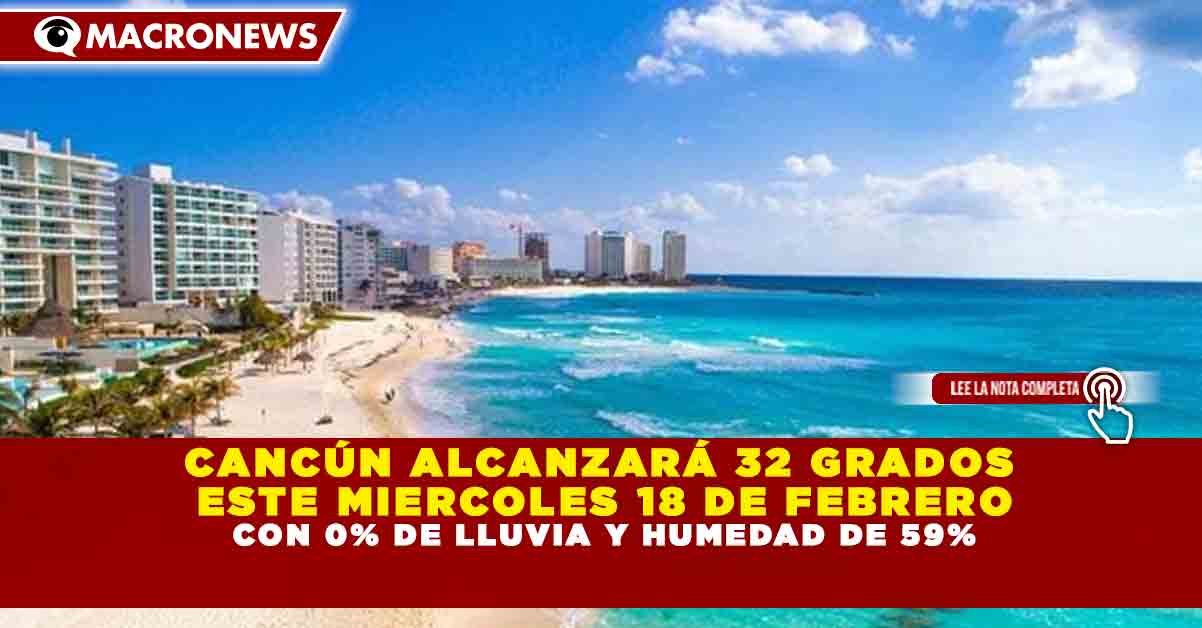 Redacción Macronews.- El clima en Cancún para este miércoles 18 de febrero se mantendrá estable, con cielo completamente despejado, temperaturas cálidas y nula probabilidad de lluvias, de acuerdo con el pronóstico meteorológico más reciente.