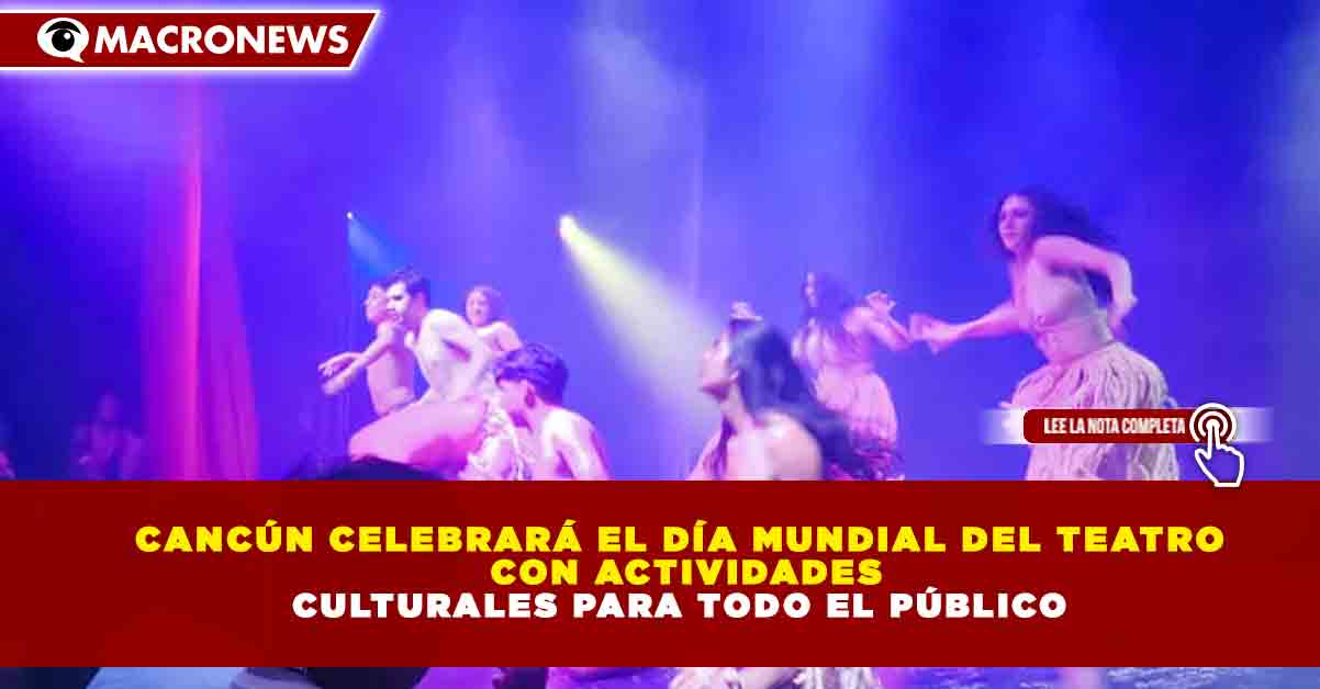 Redacción Macronews.- Más de 200 mil personas han sido beneficiadas por actividades teatrales en Cancún, consolidando a la ciudad como un referente cultural en crecimiento, en el marco de la celebración del Día Mundial del Teatro este 27 de marzo, fecha en la que se presentarán 3 obras como parte de la cartelera conmemorativa.