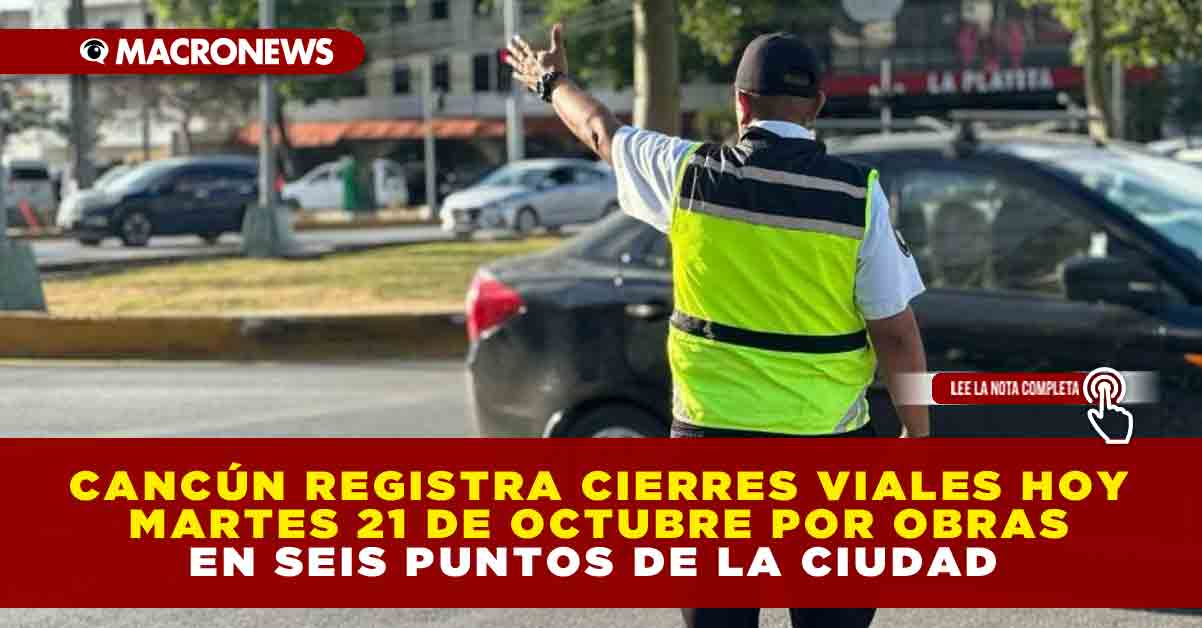 Redacción Macronews.- Durante este martes 21 de octubre de 2025, diversos puntos de Cancún presentan cierres viales debido a trabajos de infraestructura, principalmente asociados a la construcción del Puente Nichupté y otras obras urbanas. Estos ajustes afectan tanto a residentes como a turistas, por lo que se recomienda planificar con anticipación los traslados y considerar rutas alternas.