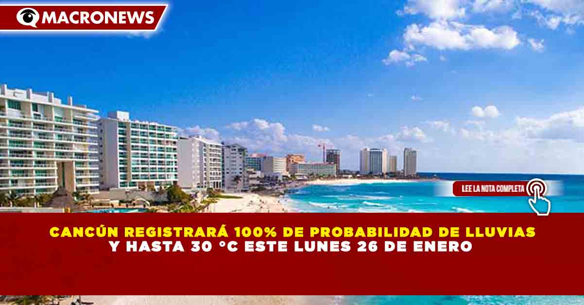 Redacción Macronews.- El clima en Cancún para este lunes 26 de enero estará marcado por lluvias ligeras y temperaturas que oscilarán entre los 22 y 30 grados centígrados, de acuerdo con el pronóstico meteorológico para la región.