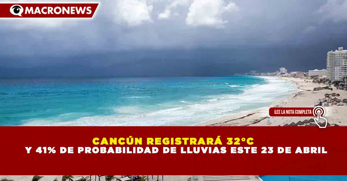 Redacción Macronews.- Para este jueves 23 de abril de 2026, el clima en Cancún se prevé con condiciones de lluvia ligera, temperaturas cálidas y humedad moderada, de acuerdo con los pronósticos meteorológicos.