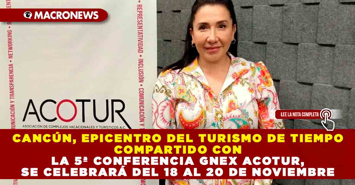 Redacción Macronews.- Cancún se consolidará nuevamente como el epicentro continental de la industria de complejos vacacionales y tiempo compartido con la celebración de la quinta edición de la Conferencia GNEX Acotur 2025, que se llevará a cabo del 18 al 20 de noviembre. Organizada por la Asociación de Complejos Vacacionales y Turísticos (Acotur), la conferencia reunirá a líderes del sector procedentes de México, Estados Unidos y Canadá.