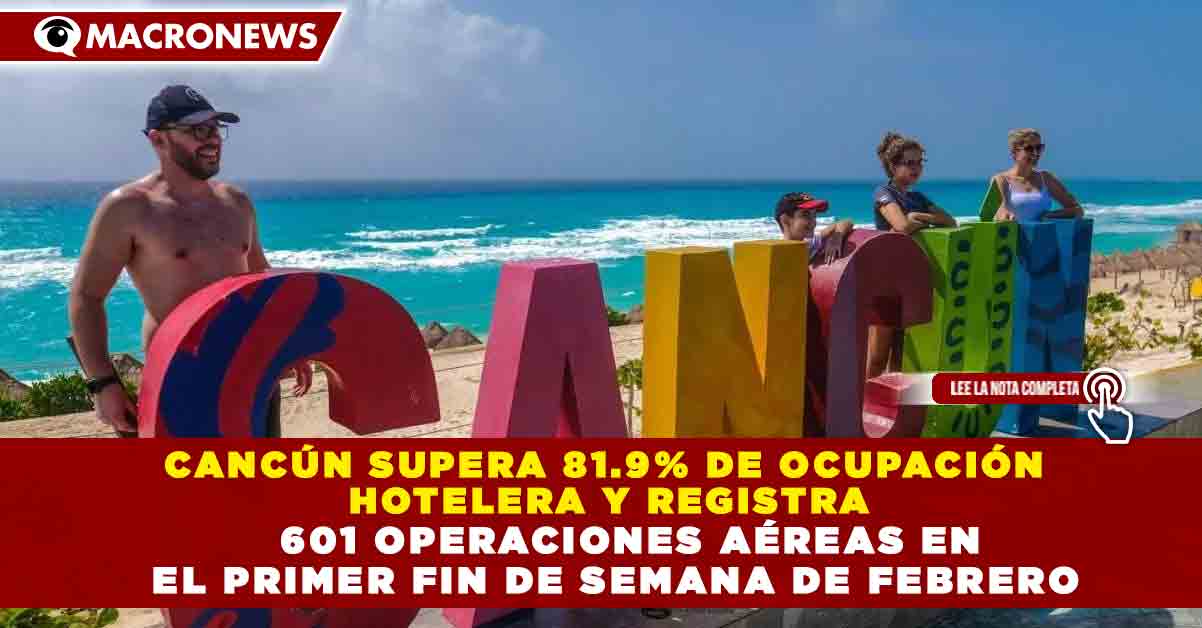 Redacción Macronews.- Cancún mantiene un sólido dinamismo turístico durante el primer fin de semana de febrero, al registrar una ocupación hotelera promedio de 81.9% y 601 operaciones aéreas en el Aeropuerto Internacional de Cancún (AIC) este sábado 7 de febrero, reflejo del alto flujo de visitantes nacionales e internacionales al destino.