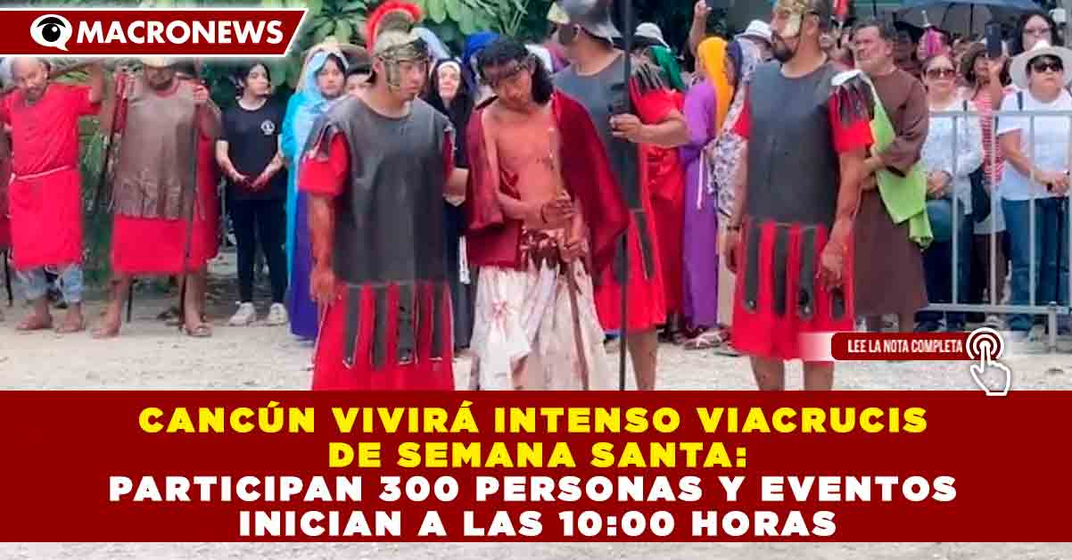 Por su parte, la Catedral de Cancún alista el tradicional Viacrucis viviente, el cual recorrerá importantes avenidas de la ciudad con la participación de aproximadamente 300 personas. El evento dará inicio a las 10:00 horas y tendrá una duración estimada de dos horas y media.