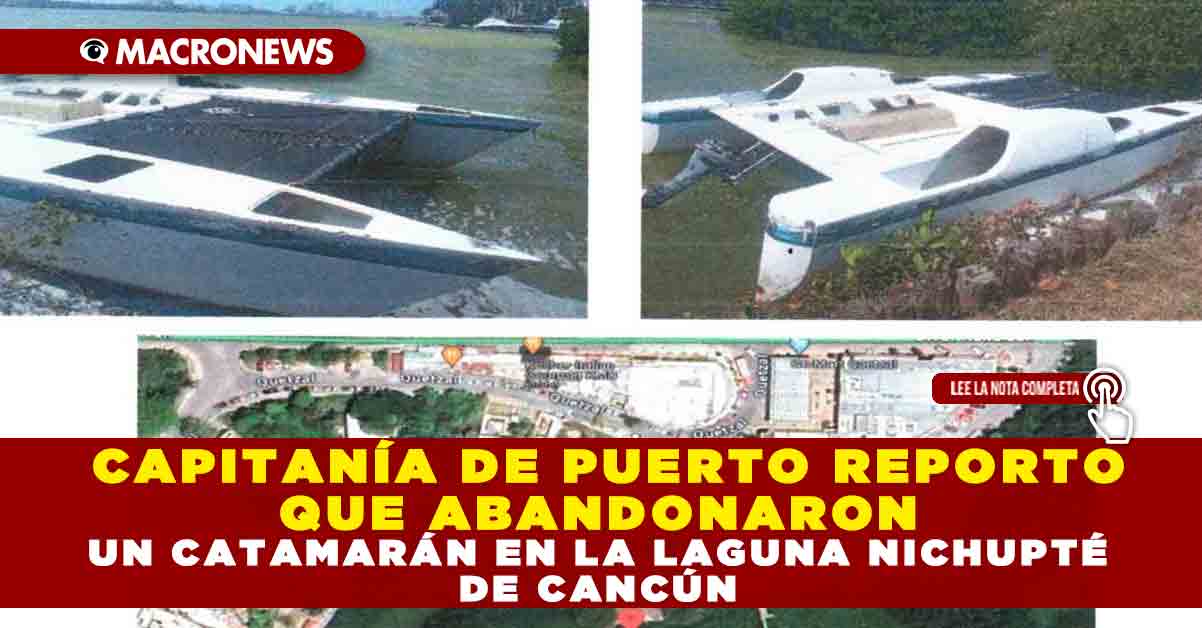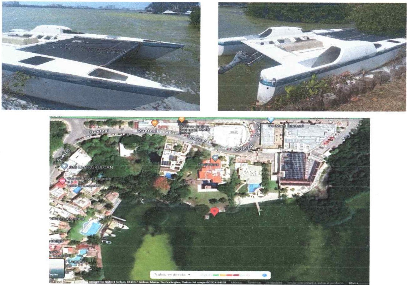 REDACCIÓN MACRONEWS POR RENAN MOGUEL.— La Capitanía de Puerto Regional reportó una embarcación tipo catamarán varada desde hace más de un mes en la Laguna Nichupté, frente a la Casa Alux y el Hotel Gran Royal Lagoon.
