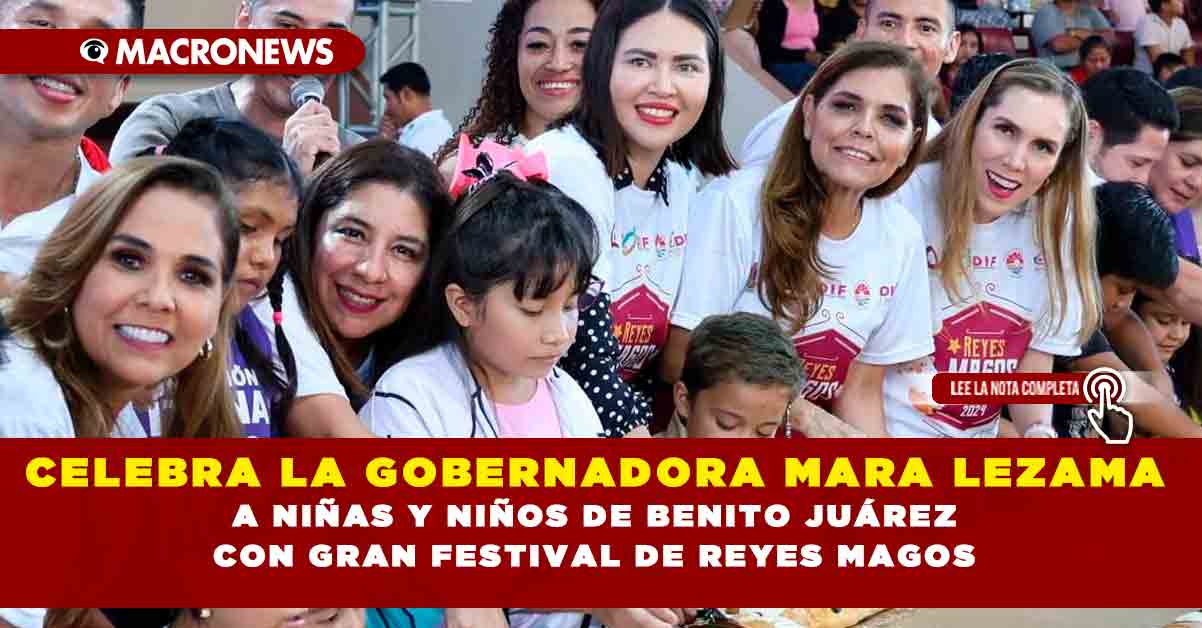 Cancún.- Más de 6 mil 500 niñas y niños del municipio de Benito Juárez disfrutaron a lado de la gobernadora Mara Lezama Espinosa del Gran Festival de Reyes Magos 2024 organizado por el Sistema DIF Quintana Roo en coordinación con el Ayuntamiento de Benito Juárez.
