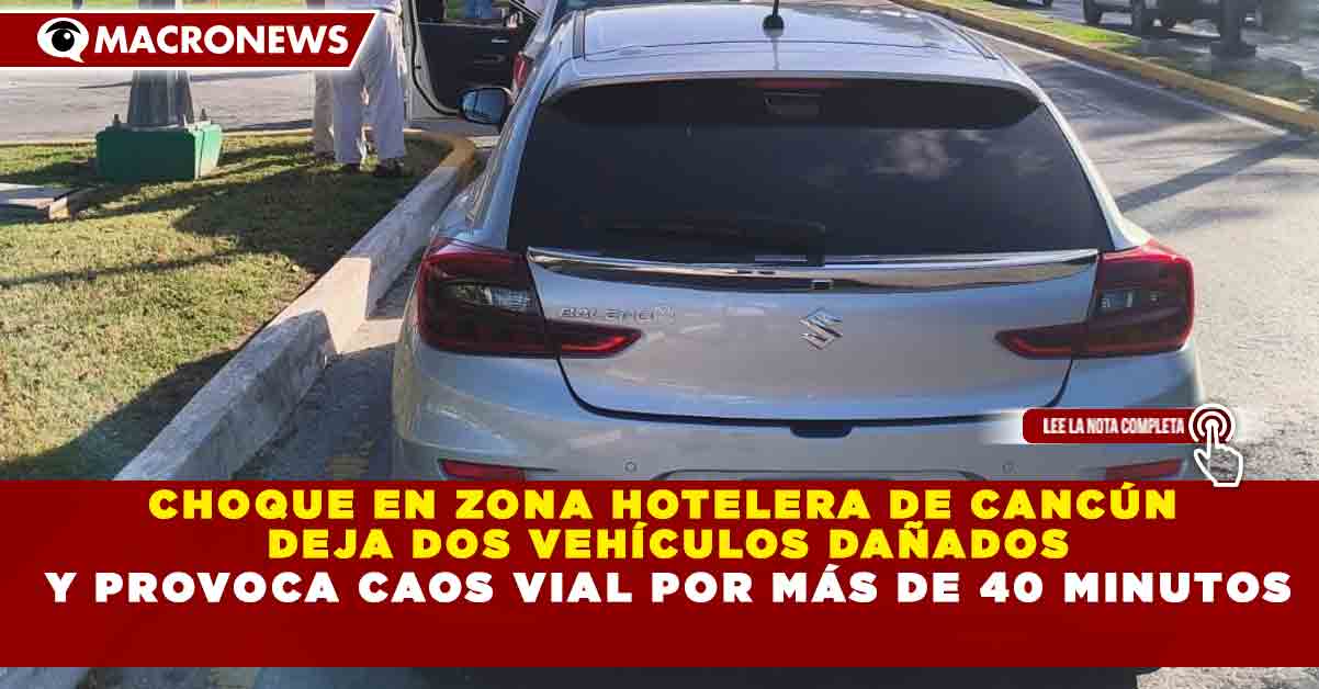 Redacción Macronews.- Un accidente vehicular registrado en la Zona Hotelera de Cancún dejó como saldo al menos dos unidades con daños materiales y generó afectaciones al tránsito por más de 40 minutos en uno de los tramos con mayor afluencia turística.