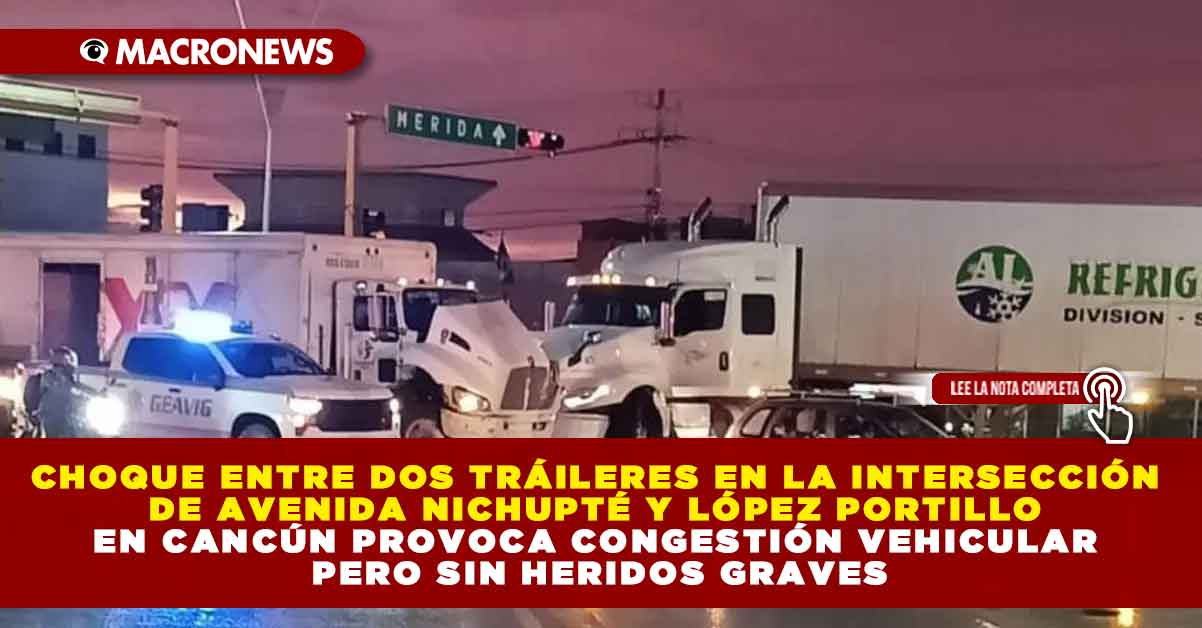 Un aparatoso accidente ocurrió alrededor de las siete de la noche de este jueves en la intersección de la avenida Nichupté con la avenida José López Portillo, cuando dos tráileres de color blanco chocaron entre sí.