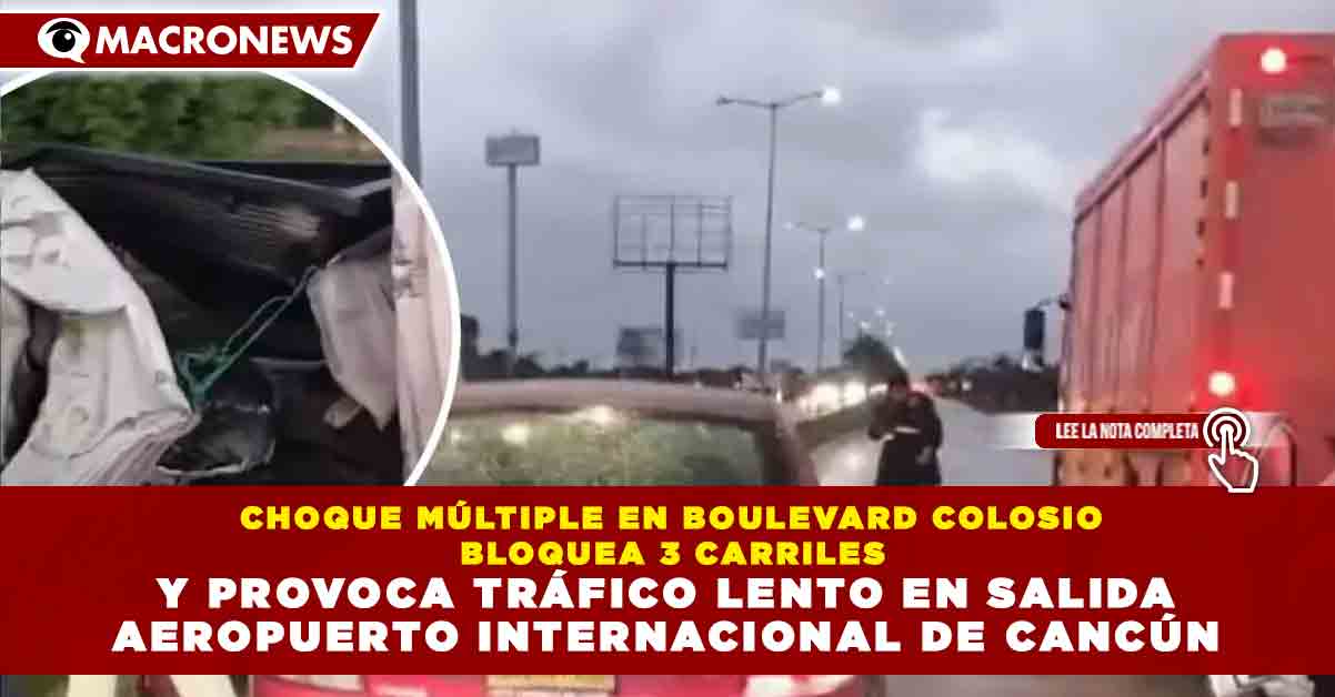 CHOQUE MÚLTIPLE EN BOULEVARD COLOSIO BLOQUEA 3 CARRILES Y PROVOCA TRÁFICO LENTO EN SALIDA AEROPUERTO INTERNACIONAL DE CANCÚN