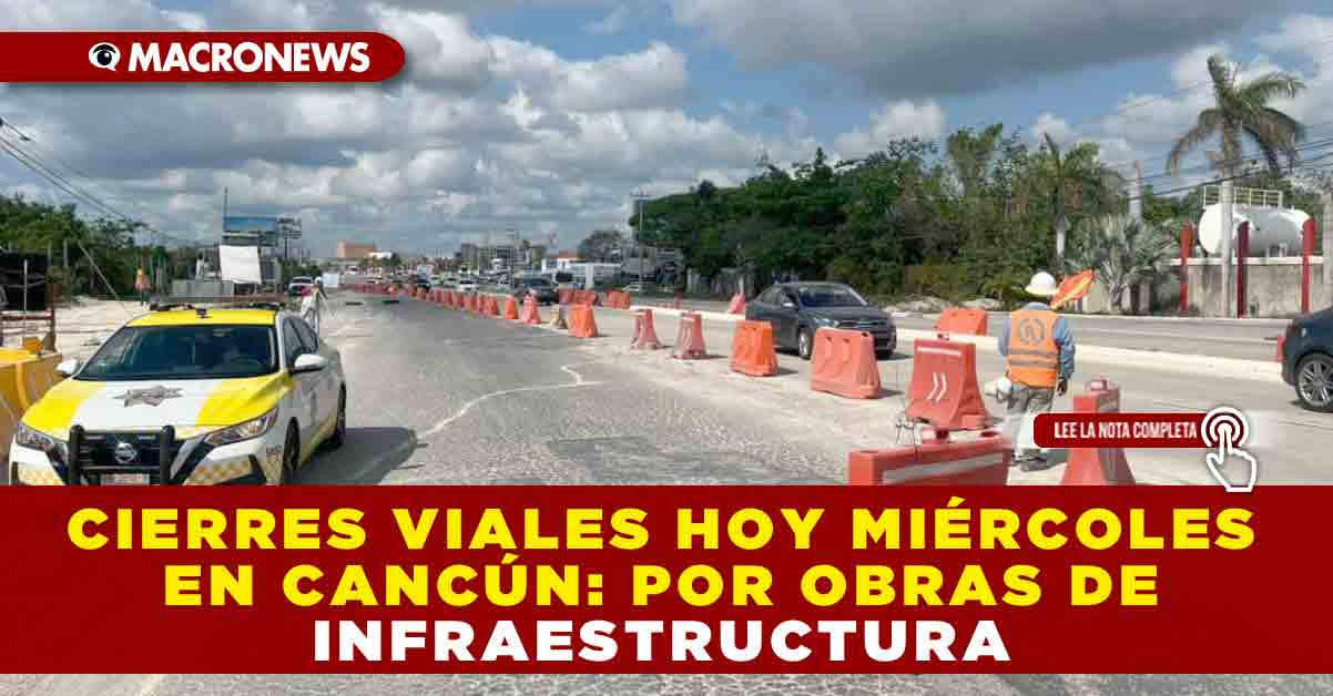 Redacción Macronews.- En la ciudad de Cancún continúan en marcha varios proyectos de infraestructura que impactan directamente la circulación vehicular. Este miércoles 29 de octubre de 2025, te presentamos los cierres y restricciones viales más relevantes, para que planees tus rutas con anticipación y evites demoras.