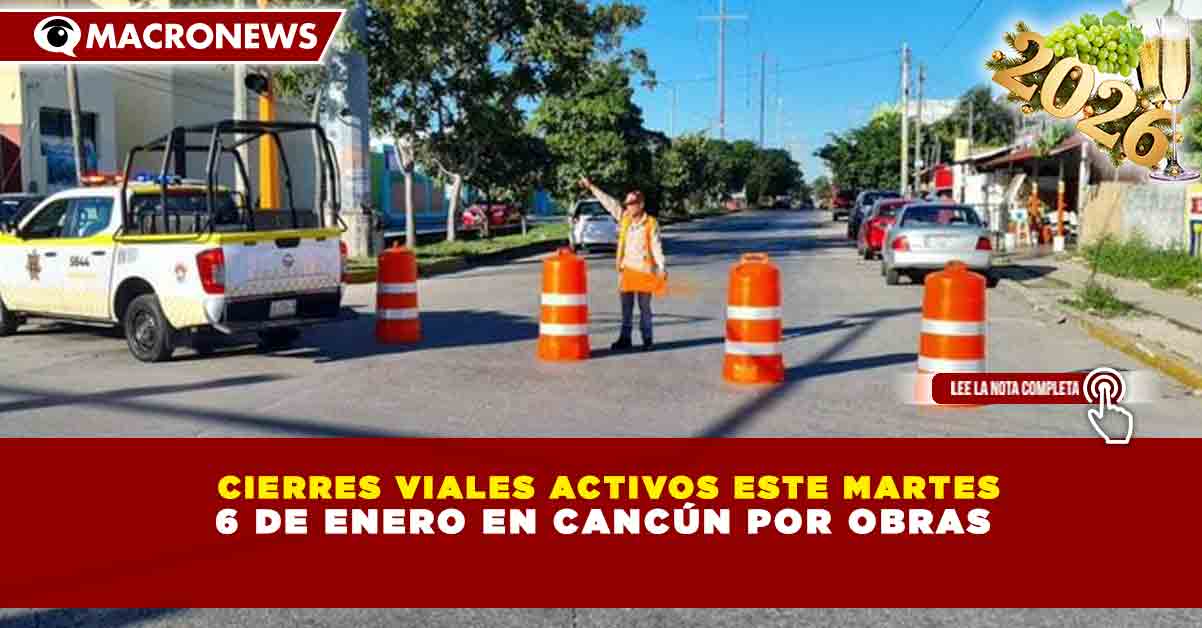 Redacción Macronews.- Si tienes planeado salir de casa este martes 6 de enero, toma precauciones, ya que al menos 6 cierres viales y confinamientos se mantienen activos en Cancún, principalmente por las obras del Puente Nichupté y trabajos de rehabilitación urbana, lo que ha incrementado la carga vehicular en avenidas clave como el Boulevard Colosio, Kukulcán y Kabah.