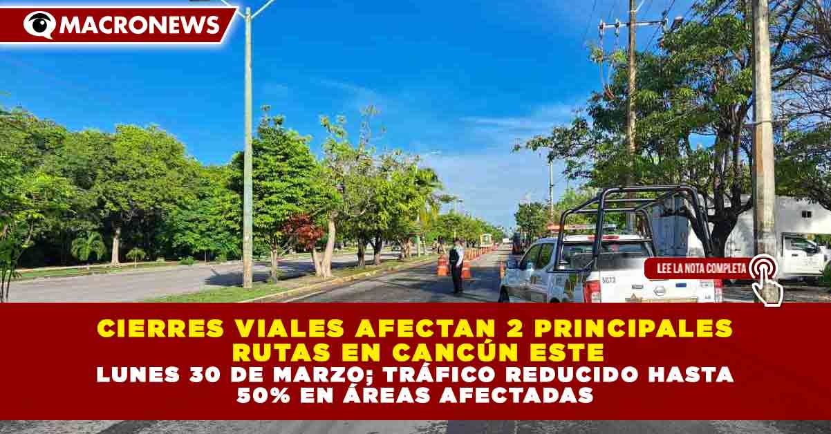 Redacción Macronews.- Diversos puntos de la ciudad presentan cierres parciales por obras y reparaciones, lo que afecta el tránsito vehicular en Cancún este lunes 30 de marzo de 2026, con reducciones de hasta el 50% en la capacidad de circulación en las zonas afectadas.