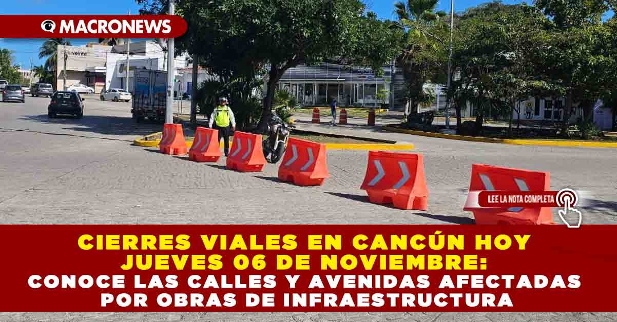 te comparte a continuación los detalles de las calles cerradas en Cancún por remodelación de vía pública que generarán tráfico en este jueves 6 de noviembre de 2025. Estos son los detalles.