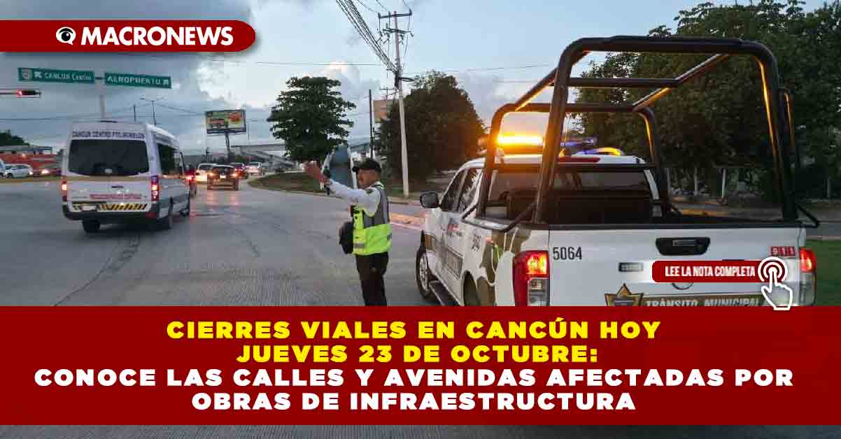 CIERRES VIALES EN CANCÚN HOY JUEVES 23 DE OCTUBRE: CONOCE LAS CALLES Y AVENIDAS AFECTADAS POR OBRAS DE INFRAESTRUCTURA