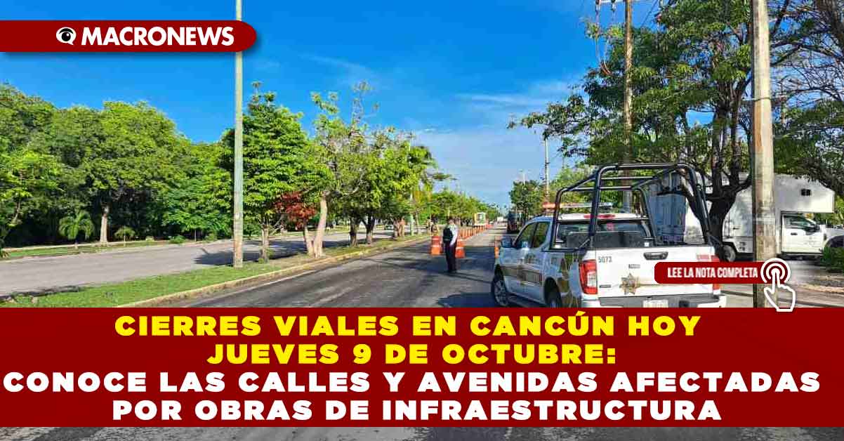 te compartimos los detalles de las calles cerradas en Cancún por obras viales que generarán tráfico en este jueves, 9 de octubre de 2025. Estos son los detalles.