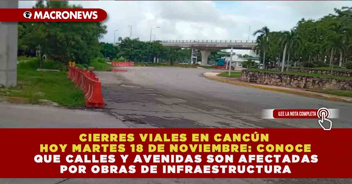 CIERRES VIALES EN CANCÚN HOY MARTES 18 DE NOVIEMBRE: CONOCE QUE CALLES Y AVENIDAS SON AFECTADAS POR OBRAS DE INFRAESTRUCTURA