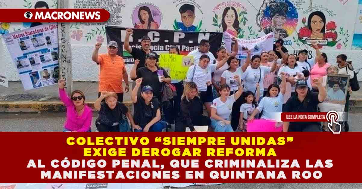 El colectivo “Siempre Unidas” denunció que la reciente reforma al Código Penal de Quintana Roo, que impone hasta 4 años de cárcel por bloquear carreteras, representa una grave violación al derecho a la protesta pacífica, protegido tanto por la Constitución mexicana como por diversos tratados internacionales.