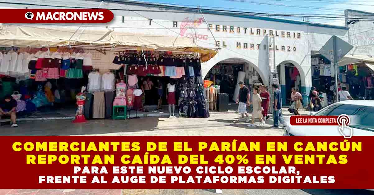 Redacción Macronews.– Con el inicio del ciclo escolar 2025–2026 y más de 84 mil alumnos de nuevo ingreso en Cancún, los comerciantes del tradicional mercado “El Parían” esperaban un repunte en ventas por el regreso a clases. Sin embargo, la temporada ha sido más lenta de lo previsto, y se reporta una caída del 40% en comparación con el año anterior, atribuida principalmente al auge de supermercados y plataformas digitales asiáticas.