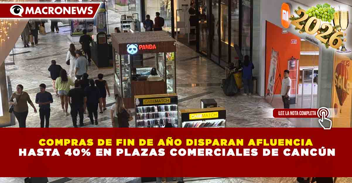 Redacción Macronews.- A pocas horas de despedir el 2025 y dar la bienvenida al Año Nuevo, las principales plazas comerciales de Cancún registran una intensa actividad, con un aumento estimado de hasta 40% en la afluencia de visitantes, impulsado por las compras de última hora relacionadas con cenas, ropa, regalos y artículos tradicionales para recibir el nuevo ciclo.