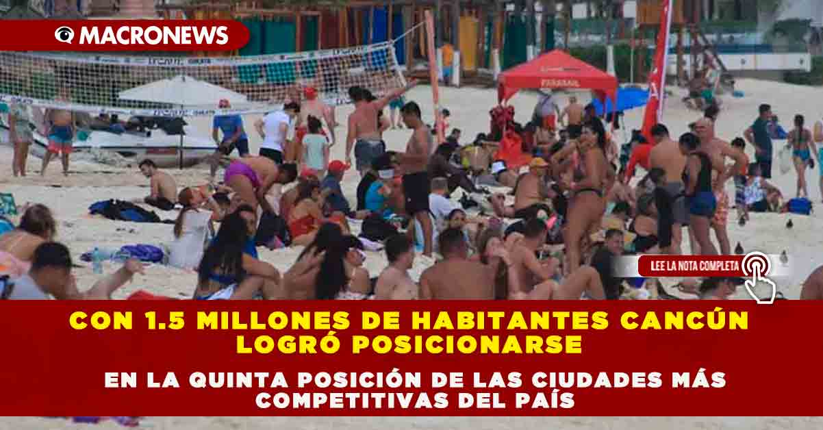 CON 1.5 MILLONES DE HABITANTES CANCÚN LOGRÓ POSICIONARSE EN LA QUINTA POSICIÓN DE LAS CIUDADES MÁS COMPETITIVAS DEL PAÍS