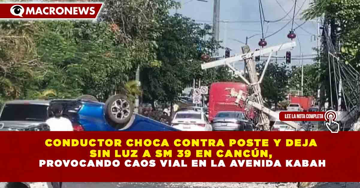 CONDUCTOR CHOCA CONTRA POSTE Y DEJA  SIN LUZ A SM 39 EN CANCÚN,  PROVOCANDO CAOS VIAL EN LA AVENIDA KABAH