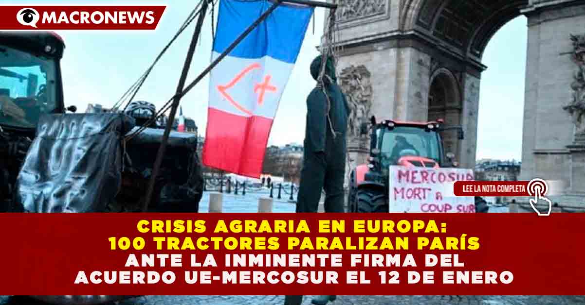 CRISIS AGRARIA EN EUROPA: 100 TRACTORES PARALIZAN PARÍS ANTE LA INMINENTE FIRMA DEL ACUERDO UE-MERCOSUR EL 12 DE ENERO