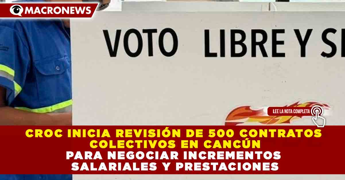 Redacción Macronews.- La Confederación Revolucionaria de Obreros y Campesinos (CROC) inició la revisión de aproximadamente 500 Contratos Colectivos de Trabajo (CCT) en Cancún, con el objetivo de negociar con el sector patronal incrementos salariales y mejoras en prestaciones, tomando como referencia el 13% que fijó la Comisión Nacional de los Salarios Mínimos (CONASAMI).