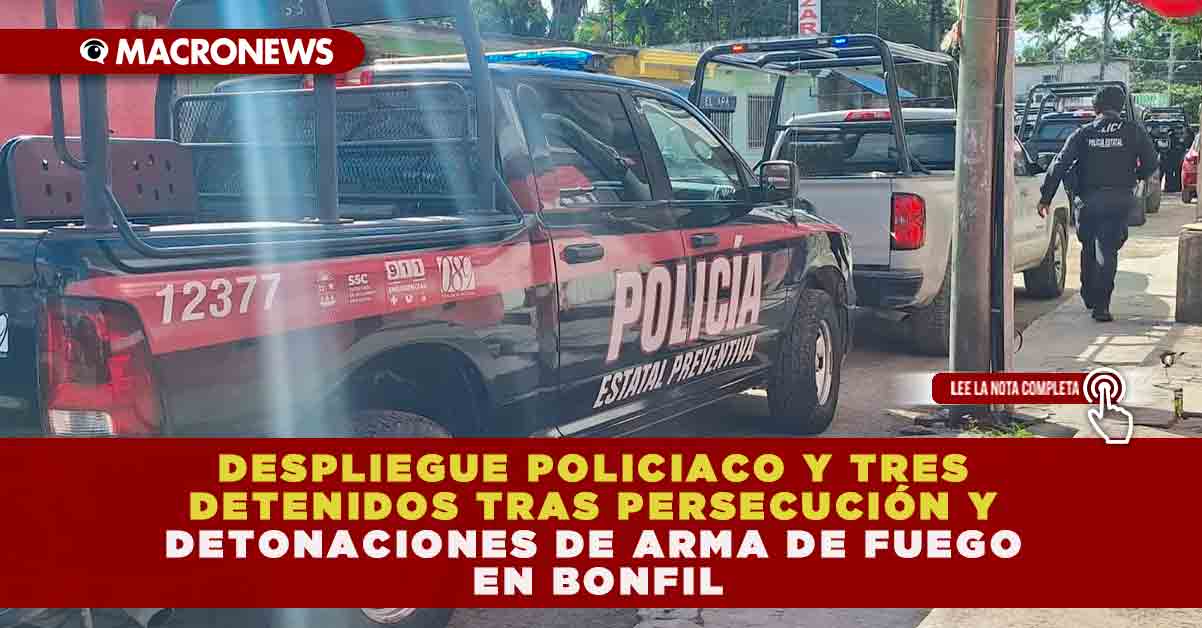 DESPLIEGUE POLICIACO Y TRES DETENIDOS TRAS PERSECUCIÓN Y DETONACIONES DE ARMA DE FUEGO EN BONFIL