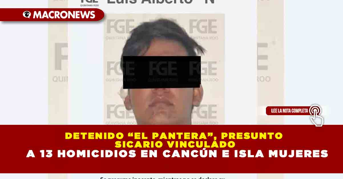 La Fiscalía General del Estado (FGE) de Quintana Roo informó la detención de Luis Alberto “N”, alias “Pancho Arreola” y/o “El Pantera”, señalado por su probable participación en 13 homicidios cometidos en los municipios de Benito Juárez e Isla Mujeres.