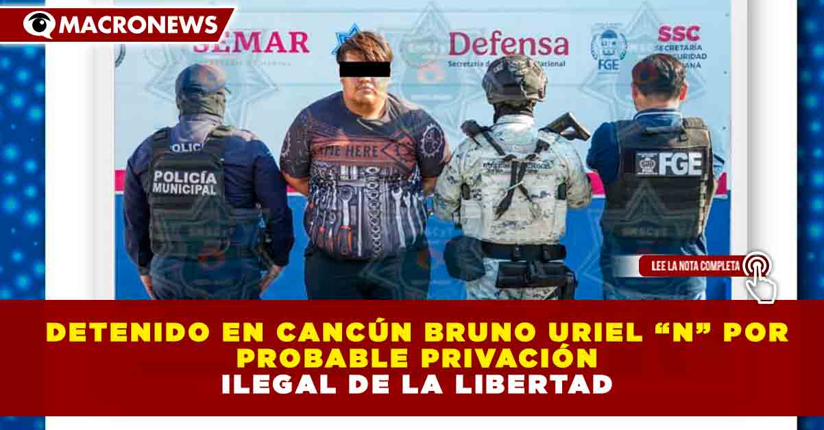 Redacción Macronews.- Cancún, Q. Roo, a 14 de febrero de 2026.– Como resultado de una acción coordinada en el marco del operativo Blindaje Cancún, autoridades en conjunto con la Fiscalía General del Estado de Quintana Roo y la Guardia Nacional detuvieron a Bruno Uriel “N”, de 23 años de edad, por su probable participación en el delito de privación ilegal de la libertad en agravio de un hombre cuya identidad se mantiene reservada.