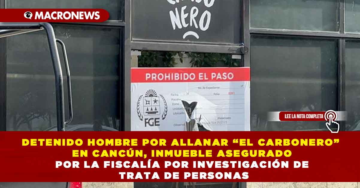 DETENIDO HOMBRE POR ALLANAR “EL CARBONERO” EN CANCÚN, INMUEBLE ASEGURADO POR LA FISCALÍA POR INVESTIGACIÓN DE TRATA DE PERSONAS