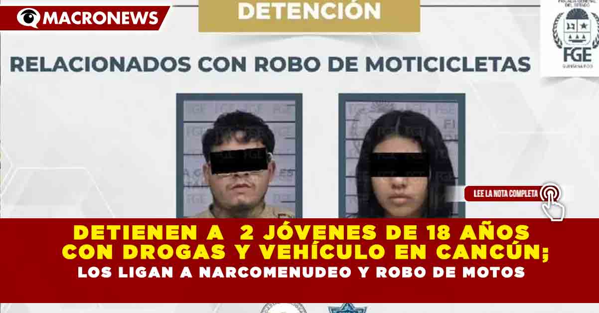 DETIENEN A  2 JÓVENES DE 18 AÑOS CON DROGAS Y VEHÍCULO EN CANCÚN; LOS LIGAN A NARCOMENUDEO Y ROBO DE MOTOS