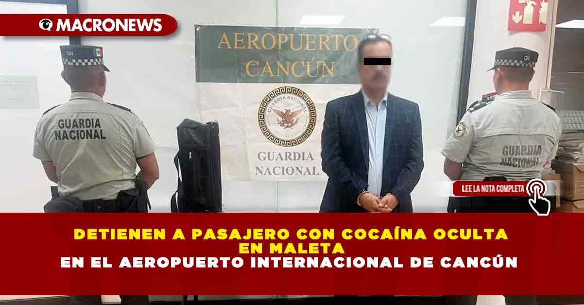 En cumplimiento de la Estrategia Nacional de Seguridad del Gobierno de México, integrantes de la Guardia Nacional detuvieron a una persona que transportaba cocaína en su equipaje, cuando pretendía abordar un vuelo en el Aeropuerto Internacional de Cancún, Quintana Roo.