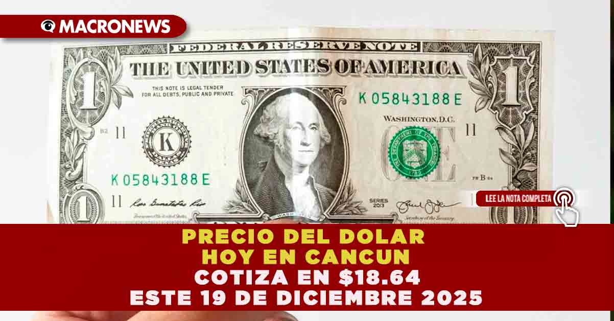 DÓLAR EN CANCÚN: EL TIPO DE CAMBIO COTIZA EN $18.64 ESTE 19 DE DICIEMBRE ANTE EL ÚLTIMO RECORTE DE TASAS DE BANXICO