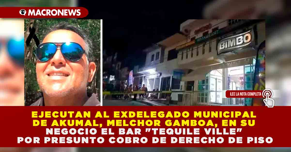 Redacción Macronews.- La violencia volvió a sacudir al municipio de Tulum. La tarde de este jueves, el exdelegado municipal de Akumal, Melchor Gamboa, fue ejecutado a balazos dentro de su propio negocio, el bar “Tequila Ville”, ubicado en el centro de la comunidad. El ataque, perpetrado por dos sujetos armados, dejó al exfuncionario sin vida detrás de la barra, mientras los agresores escapaban a bordo de una motocicleta.