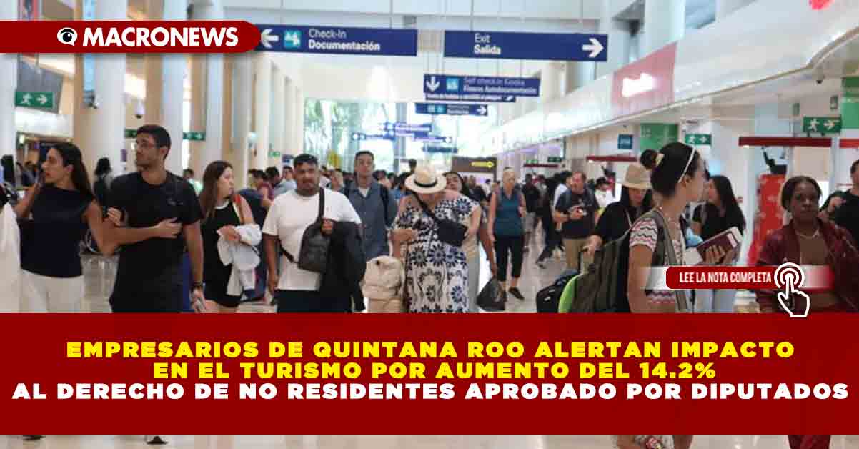 El sector empresarial lamenta el incremento de 14.2% al Derecho de No Residente aprobado por la Cámara de Diputados en el Presupuesto de Ingresos del gobierno federal para 2026 y alertan que este tipo de medidas favorece a competidores como Punta Cana que ya están aprovechando el turismo internacional que pierde el Caribe mexicano.