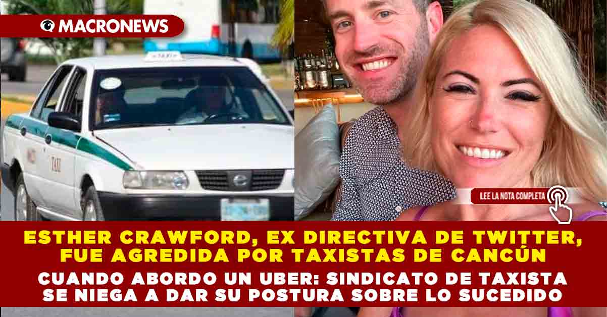 REDACCIÓN MACRONEWS POR DARSET RIVERO.— A través de su cuenta de Twitter, Esther Crawford , narro el suceso incomodo que vivieron en la ciudad de Cancún, ya que después de abordar un Uber, la unidad fue agredida por un grupo de taxistas.