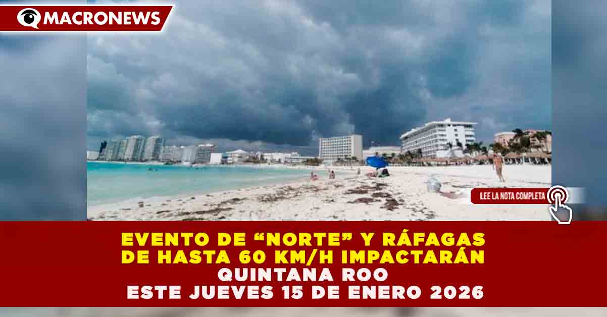 EVENTO DE “NORTE” Y RÁFAGAS DE HASTA 60 KM/H IMPACTARÁN QUINTANA ROO ESTE JUEVES 15 DE ENERO