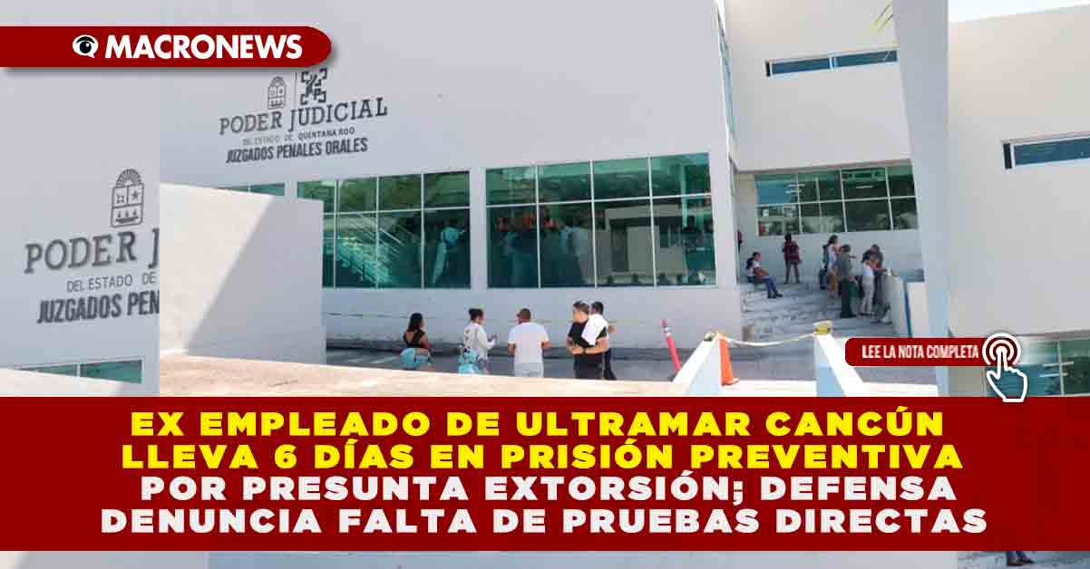 Redacción Macronews.- Héctor A. M. E., ex empleado administrativo de la naviera Ultramar, permanece en prisión preventiva desde hace seis días por su presunta participación en un caso de extorsión, sin que hasta el momento se hayan presentado pruebas directas que lo vinculen con el delito. Así lo expuso su abogado defensor, Rodolfo de la Guardia, durante una audiencia judicial celebrada en Cancún, donde se dio seguimiento al proceso legal en curso.