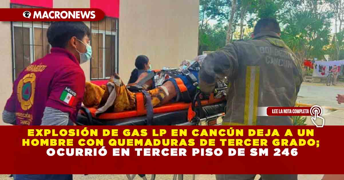 Redacción Macronews.- Un residente de un edificio de apartamentos en Cancún fue trasladado de urgencia al hospital en estado grave, luego de registrarse una explosión por acumulación de gas LP al interior de su cuarto de lavado, accidente que le provocó quemaduras de tercer grado en la parte superior del cuerpo, informaron autoridades de emergencia.