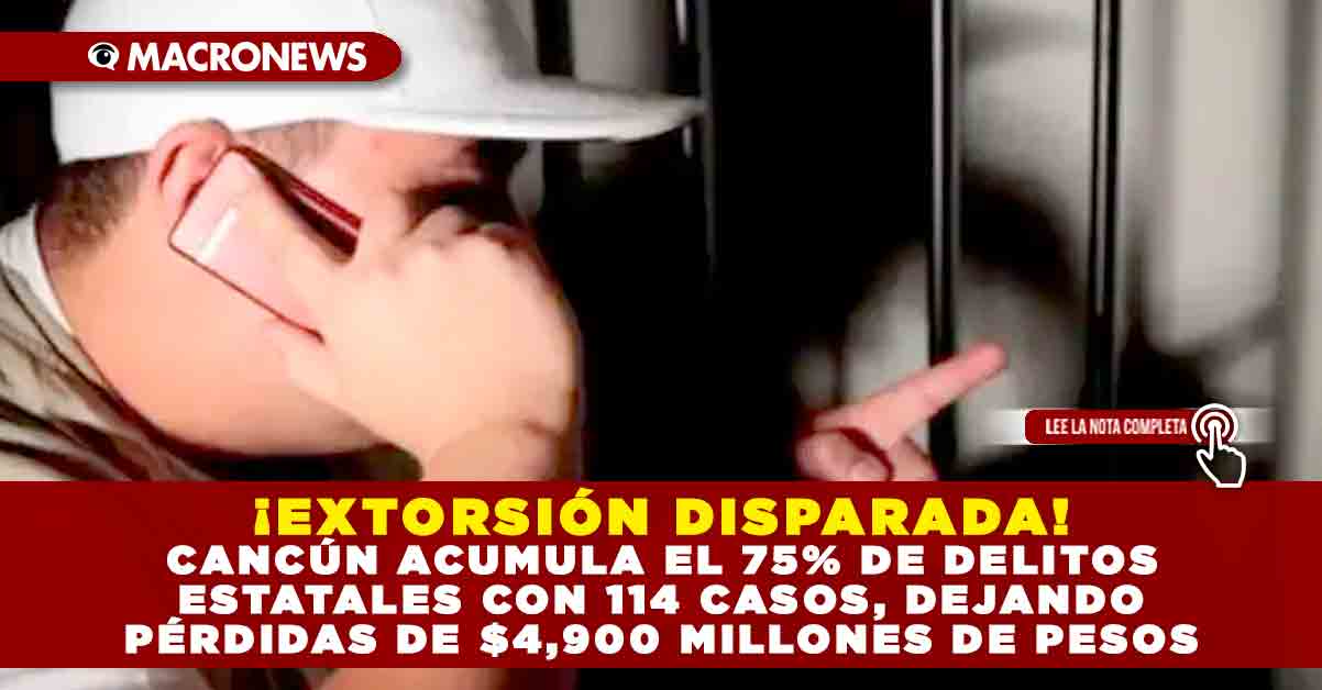 Redacción Macronews.- Cancún acumula 114 de los 152 casos de extorsión registrados en Quintana Roo hasta el 30 de septiembre de 2024, lo que representa el 75 % del total estatal, según datos del Secretariado Ejecutivo del Sistema Nacional de Seguridad Pública (SESNSP) y el Semáforo Delictivo del Estado. Esta cifra posiciona a Benito Juárez como el principal foco de este delito en la entidad.