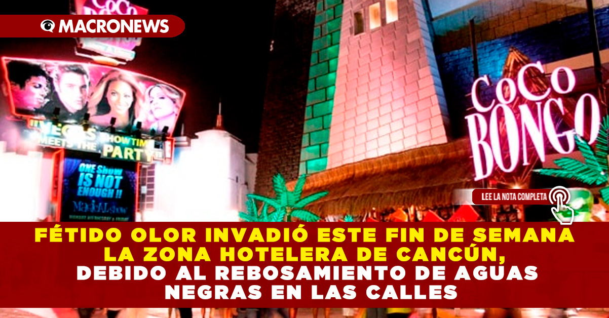 Un fétido olor invadió este fin de semana la zona de bares y discotecas del bulevar Kukulcán, en Cancún, debido al rebosamiento de aguas negras en las calles de este distrito.