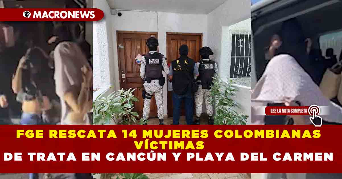 Catorce mujeres de nacionalidad colombiana, presuntas víctimas de hechos constitutivos del delito de trata de personas en su modalidad de prostitución ajena, fueron rescatadas por personal de la Fiscalía General del Estado y la Guardia Nacional, durante el cumplimiento de órdenes de cateo giradas por un juez, en inmuebles de los municipios Benito Juárez y Playa del Carmen.