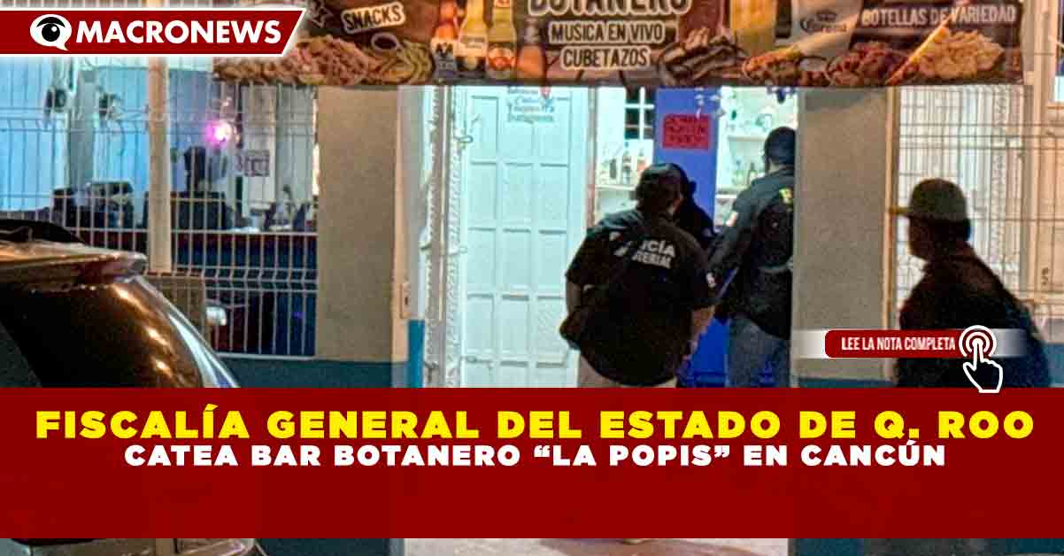 Redacción Macronews por Santiago Ramírez.- La Fiscalía General del Estado de Quintana Roo dio un golpe de autoridad al llevar a cabo un cateo en el bar botanero “La Popis”, ubicado en la ciudad de Cancún.